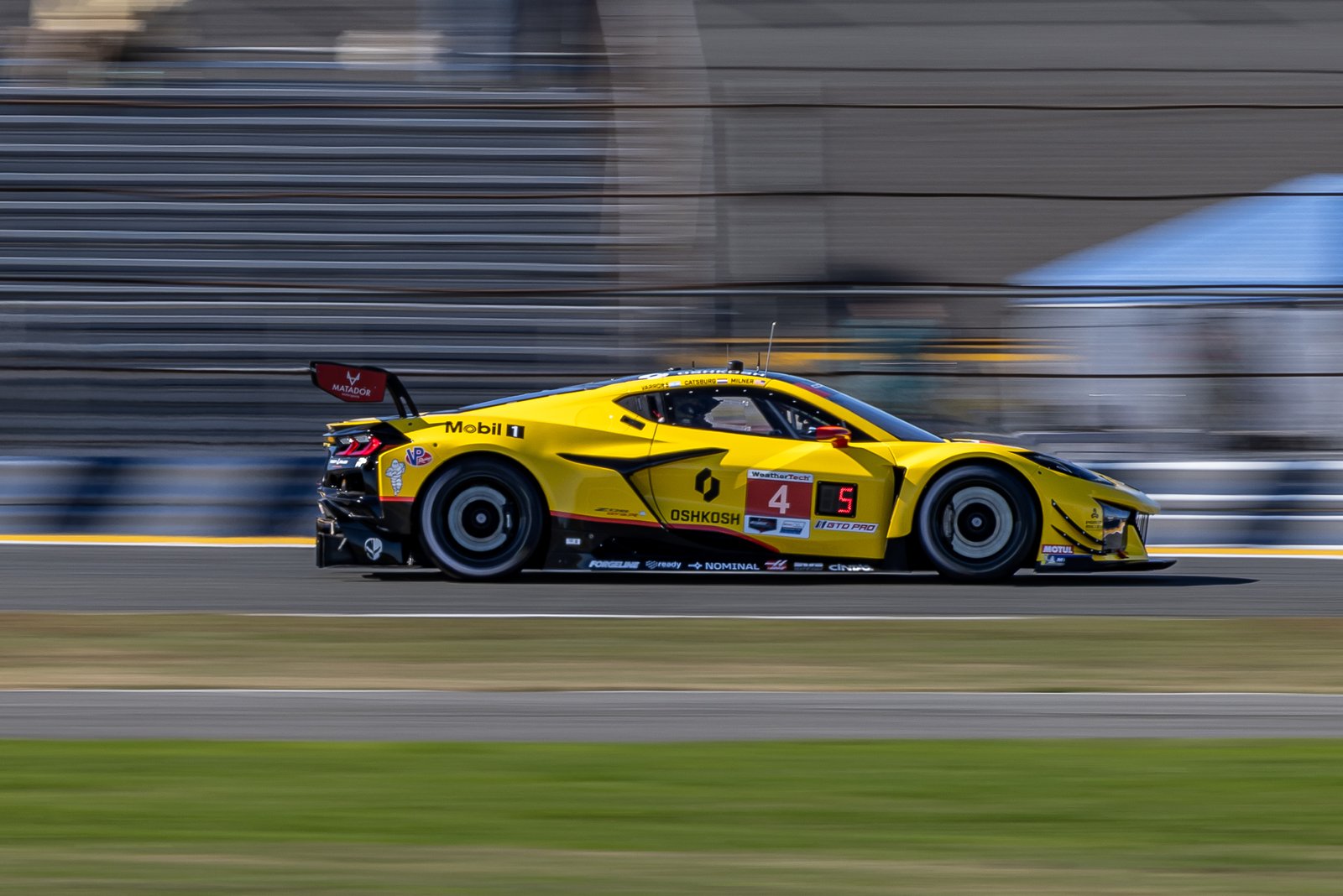 3 Pratt Miller Racing Corvette Leads a Large Group of Cars Toward the West Horseshoe at Daytona International Speedway – 2025