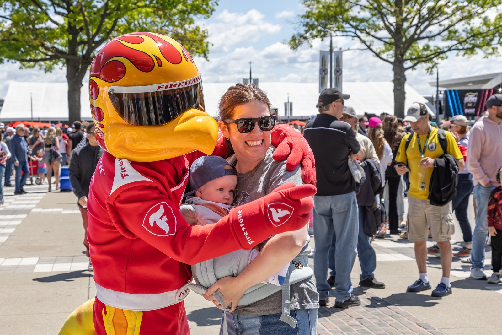 Firestone Firehawk Poses with a Mom and Her Son at Indianapolis