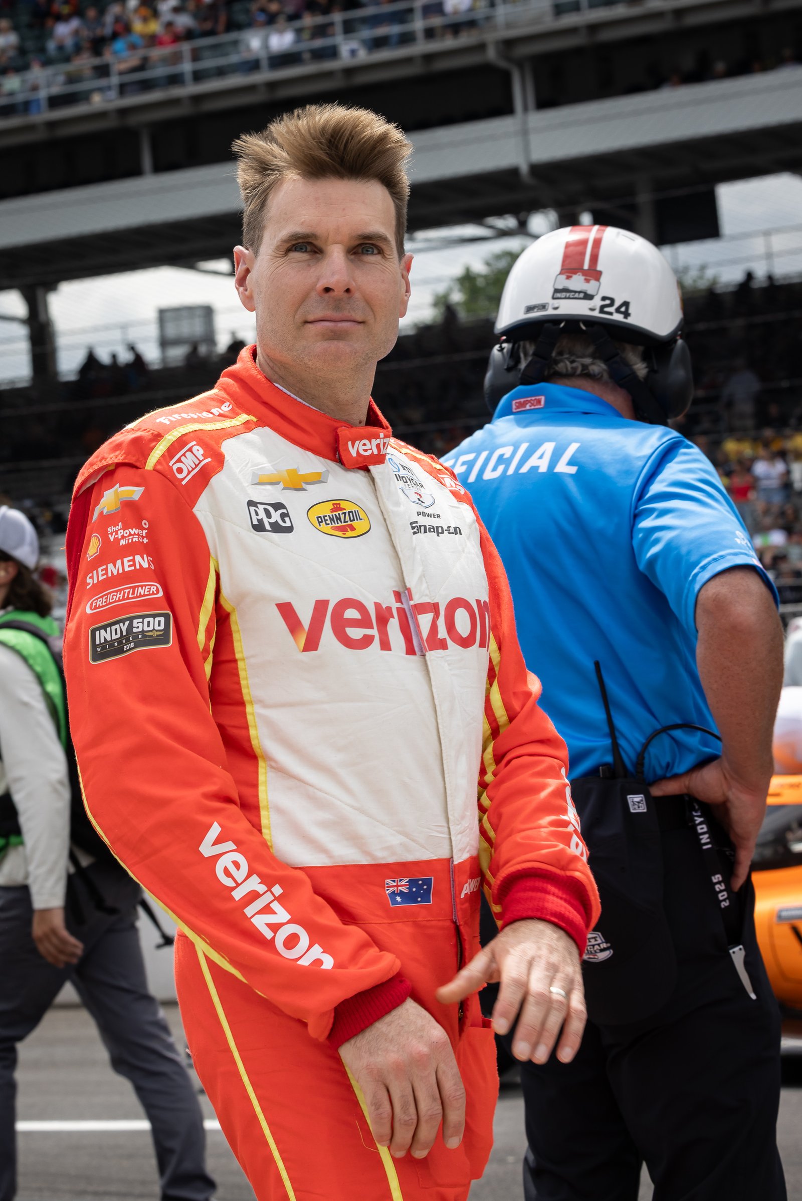Scott Dixon Rests His Steering Wheel on the Outside of His Car