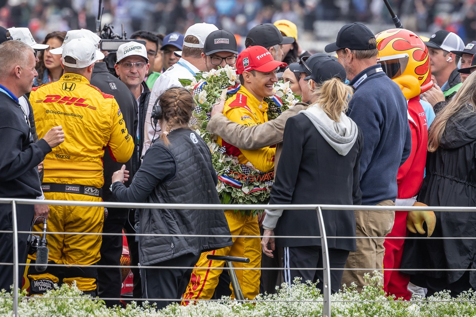 Alex Palou Celebrates His 2025 Indy 500 Win with the Media and Fans