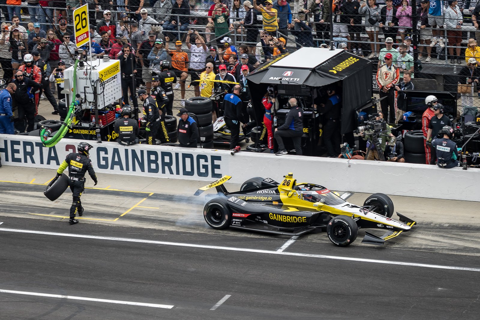 Colton Herta Takes Off After a Pit Stop at the 2025 Indy 500