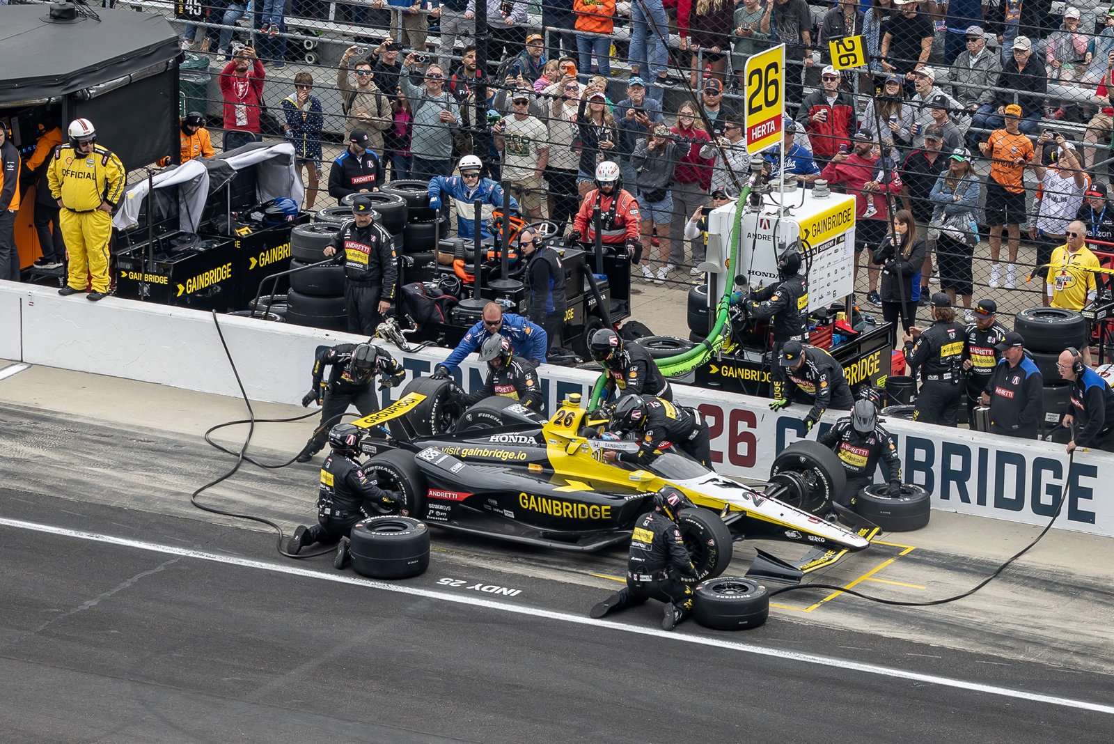 Colton Herta Team Services His Car During a Pit Stop at the 2025 Indy 500