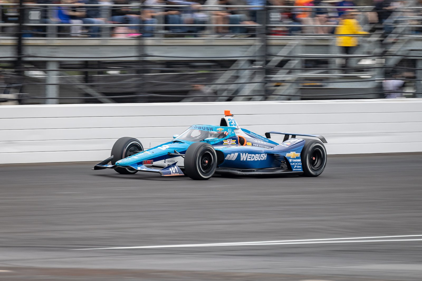 Felix Rosenqvist Exits Turn 4 at the 2025 Indy 500