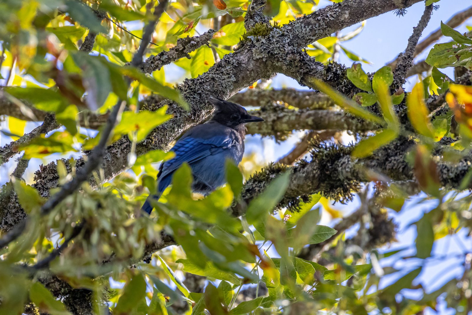 Steller’s Jay Resting in the Middle of a Tall Tree